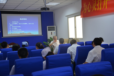 会诊结束之后,王飚教授为本院医生带来了一场精彩的精神疾病专题讲座,以幻灯片的形式,通过分析,用药方案,患者心理等方面,深入浅出的详细讲解了各种精神疾病的治疗和护理。王国刚院长表示,“王飚教授的讲座十分精彩,获益良多,在精神疾病治疗方面带来了许多新的启发。”